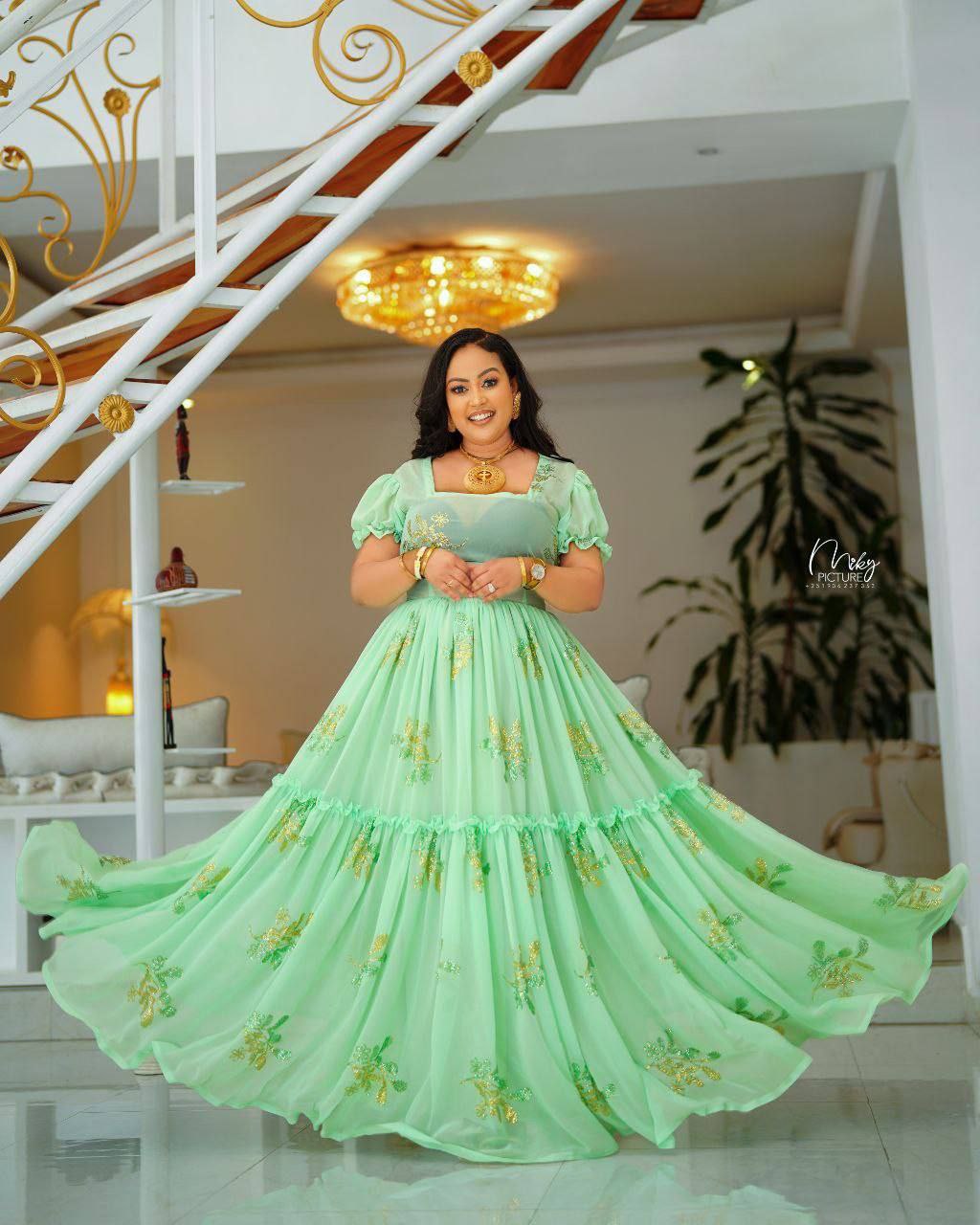 Designed for comfort and to flatter the feminine silhouette, the full-length skirt flows gracefully with every step. This dress is perfect for weddings, cultural celebrations, or any occasion where you want to showcase your Habesha heritage in a unique and stylish way.