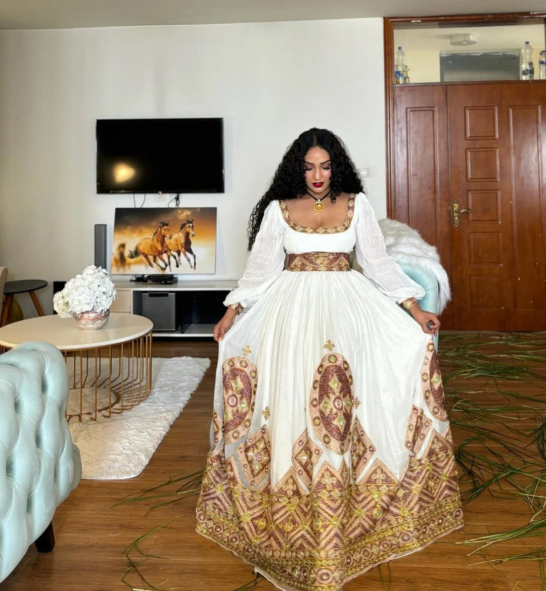Exquisitely crafted Habesha Kemis, featuring a handwoven design
