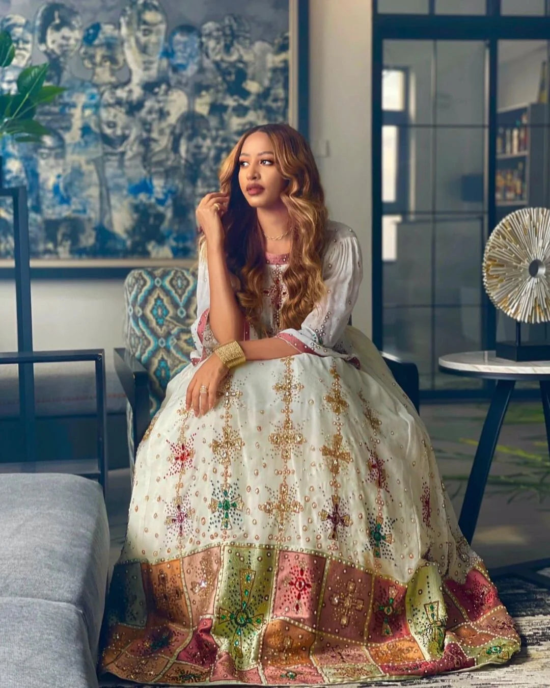 Handwoven Habesha Kemis A modern, exquisite Habesha wedding dress