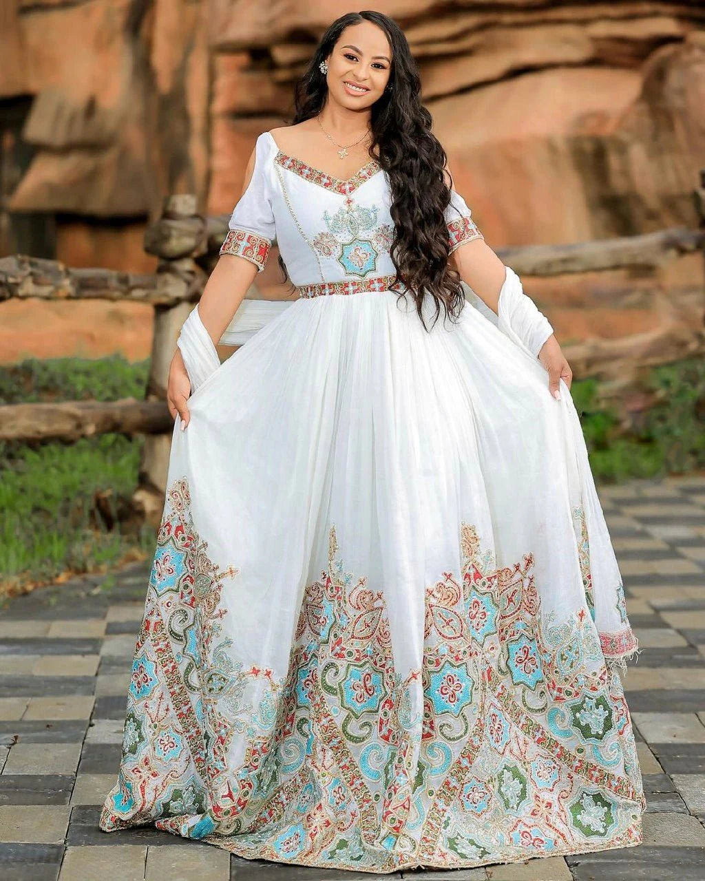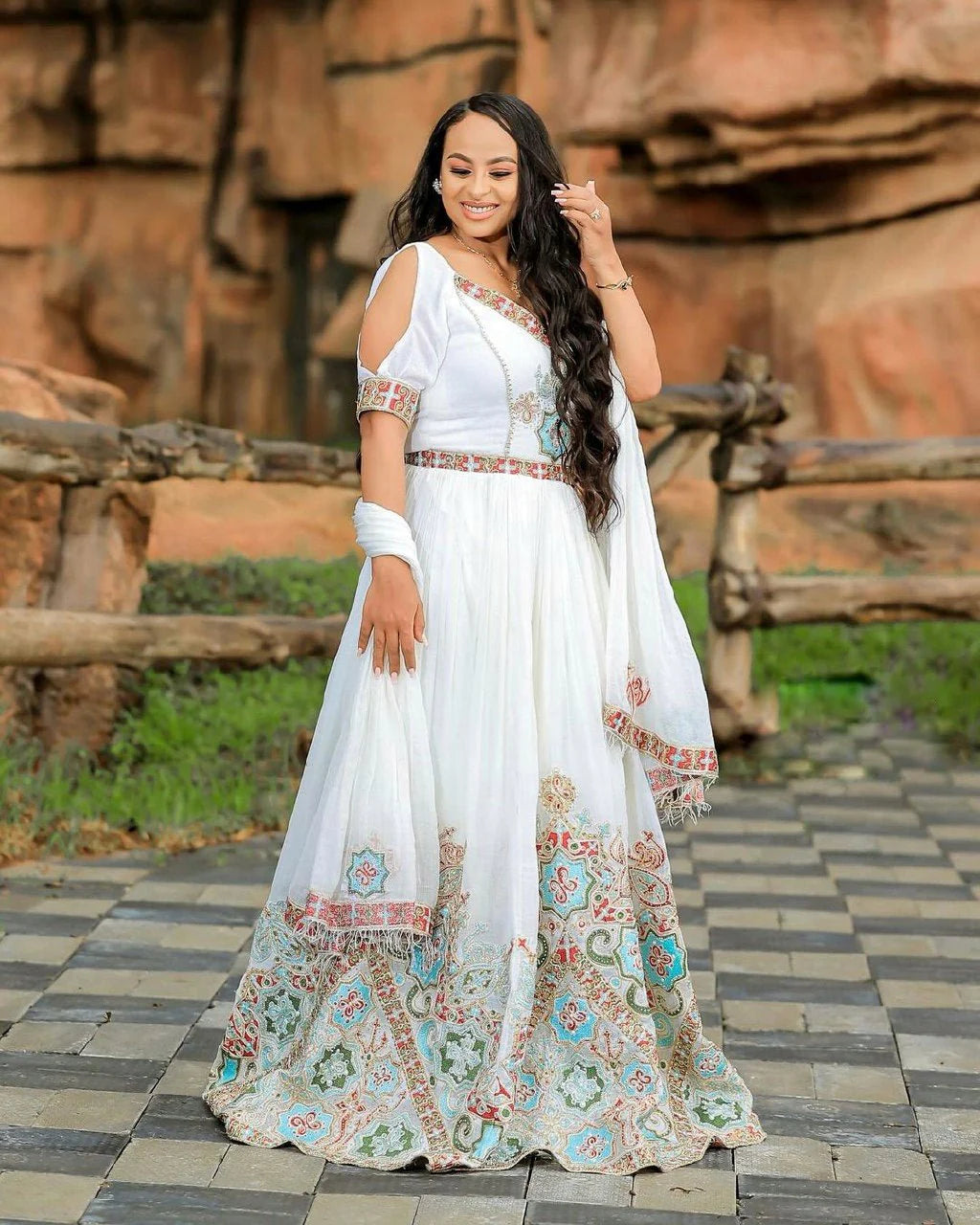 Celebrate your special day in elegance with our stunning collection of wedding Habesha dresses. Each kemis features beautiful light designs, embodying grace and sophistication. Feel like royalty as you embrace the timeless allure of Habesha style on your wedding day.