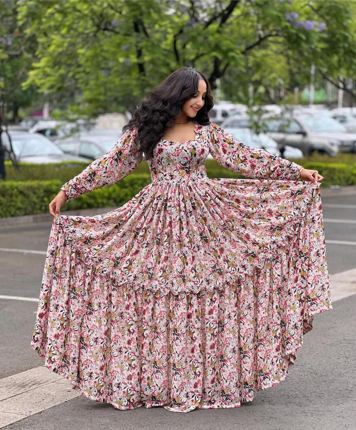 This dress is ideal for any celebration or cultural gathering; it blends simplicity with a touch of luxury, creating a statement that honors tradition while embracing the elegance of the present.