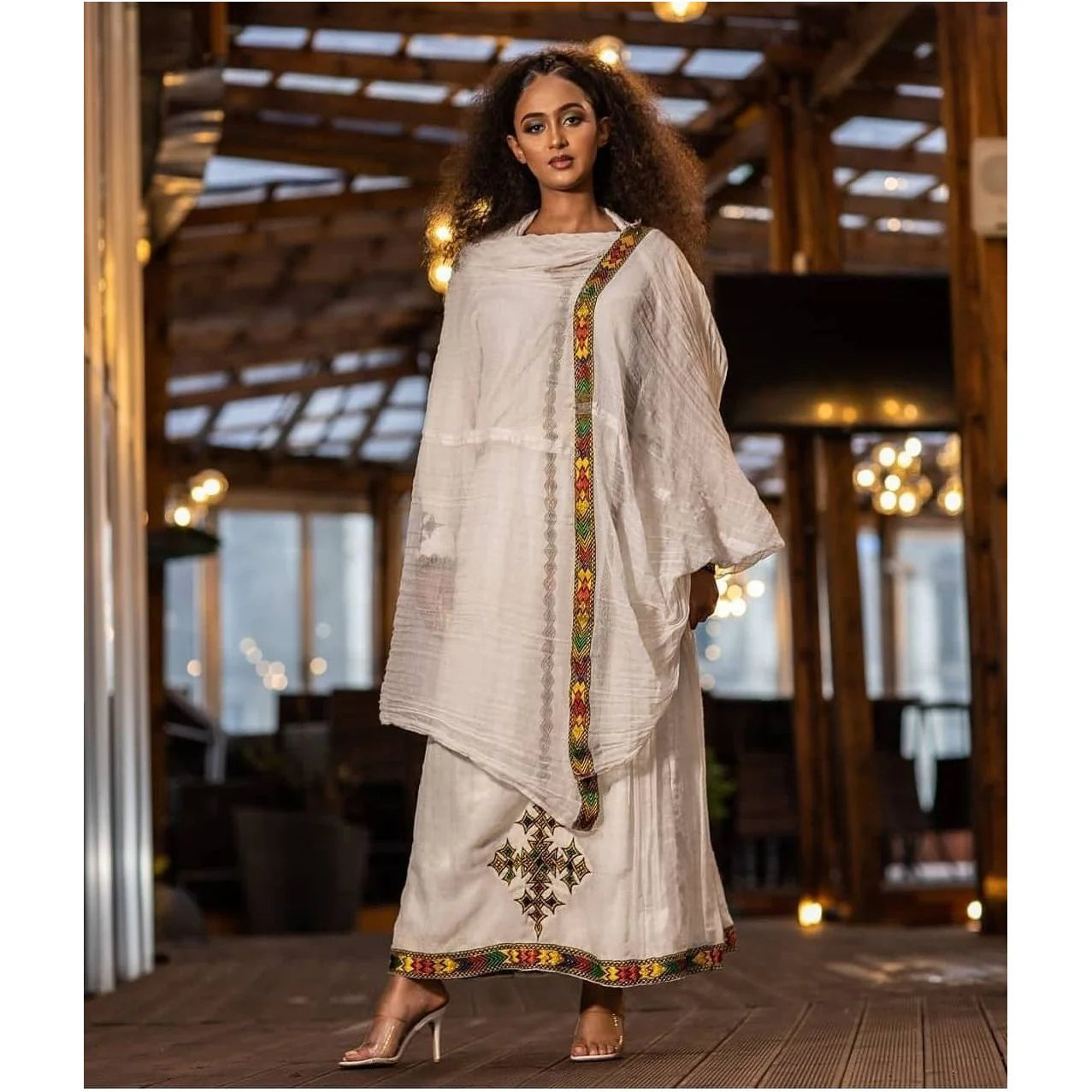 Vibrant Menen Luxury Habesha Dress with Tilf Embroidery, Habesha gown, Habesha attire
